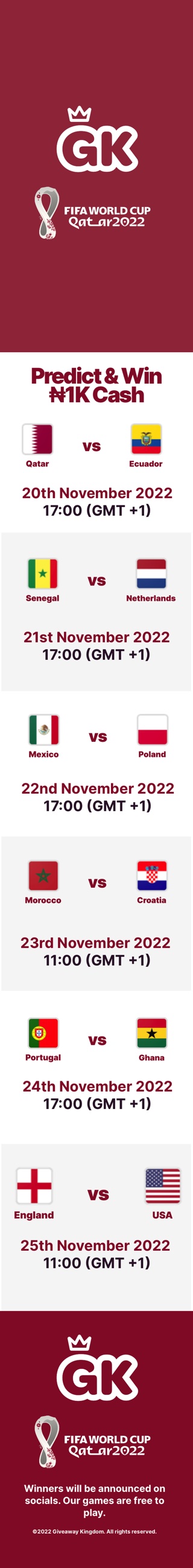Winners will be announced on socials. Our games are free to play. ©2022 Giveaway Kingdom. All rights reserved.